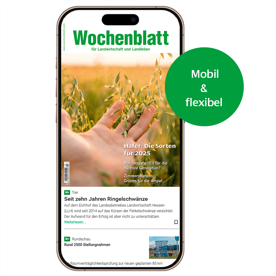 Das Wochenblatt für Landwirtschaft und Landleben ist das führende Fachmedium für Landwirte und Bewohner des ländlichen Raums in Westfalen-Lippe. Mit einem gelungenen Mix aus praxisnahen Fachthemen rund um die Landwirtschaft und vielfältigen Beiträgen zum Landleben bietet es wertvolle Informationen und Anregungen. Ob Agrarpolitik, Pflanzenbau oder Themen vom Land – das Wochenblatt informiert verlässlich und verständlich.